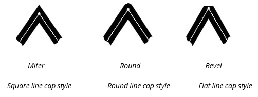 - Line Join Style: The line join style specifies the shape to be used at the corners of paths that are stroked. The allowed values are Miter joins, Round joins and Bevel joins.