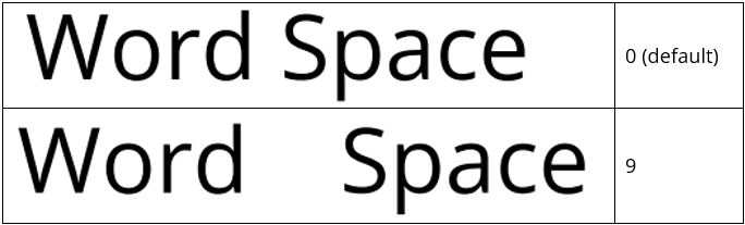 Character Space – inserts uniform spacing between two or more characters in selected text.