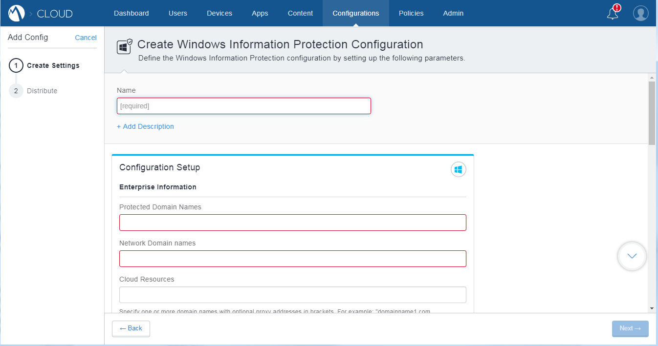 - Go to Configuration > + Add to create a WIP configuration (or a WIP policy).