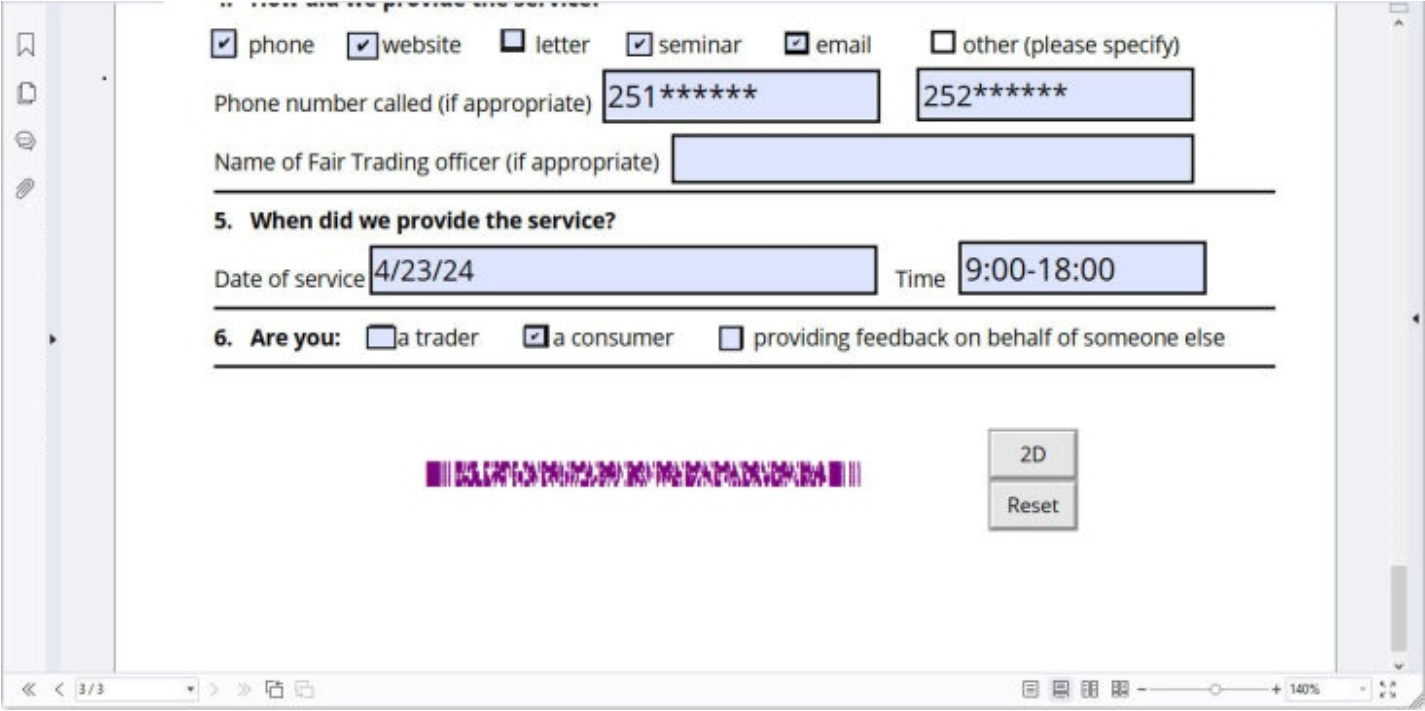 - Upon completion, click the barcode generation button (if any) on the form file to generate 2D barcode.